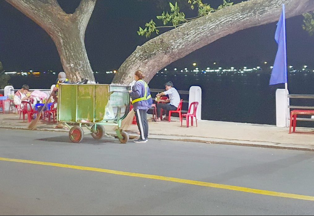 Trong không gian tịch tĩnh, tiếng chổi tre của những chị phụ nữ Xí nghiệp Môi trường đô thị TX. Tân Châu (tỉnh An Giang) đã làm xao xuyến bao người. Dù mưa hay nắng, họ vẫn cần mẫn quét, thu dọn rác… góp phần làm cho phố xá luôn sạch đẹp.