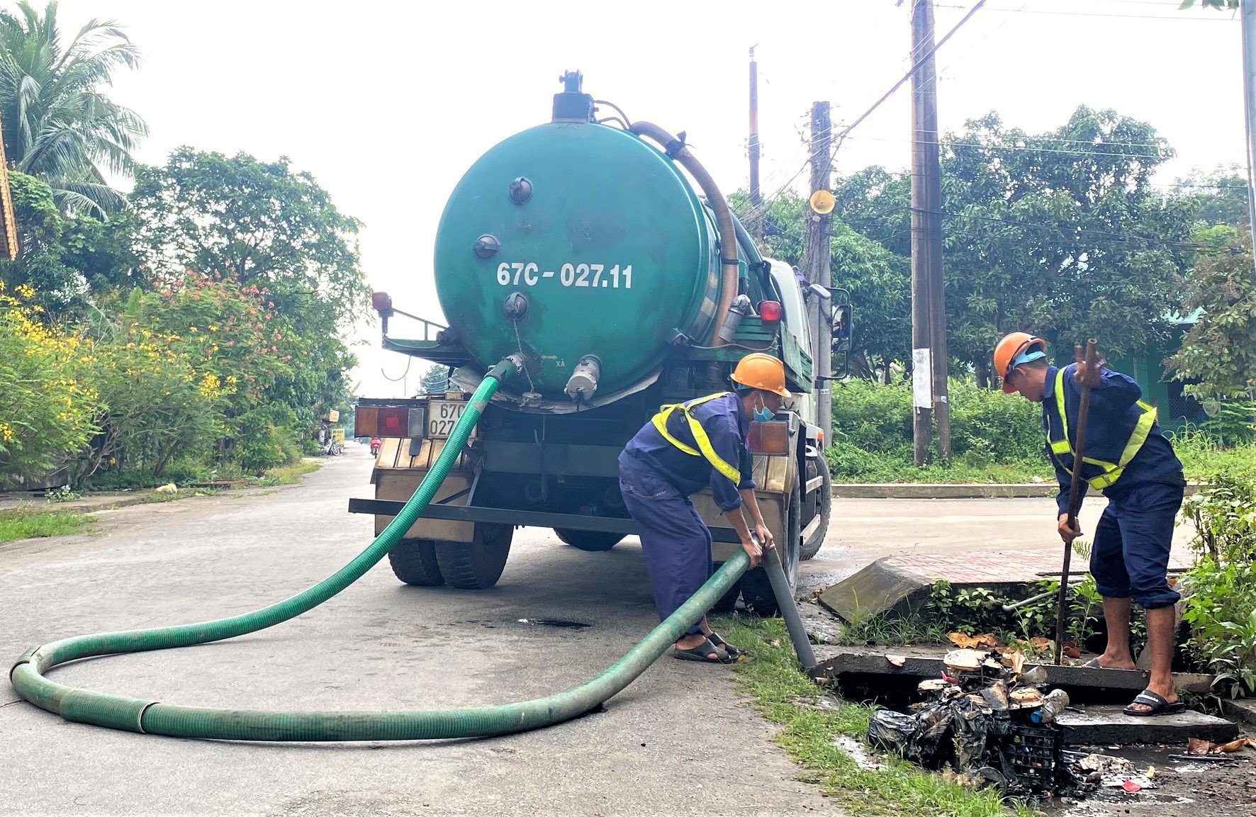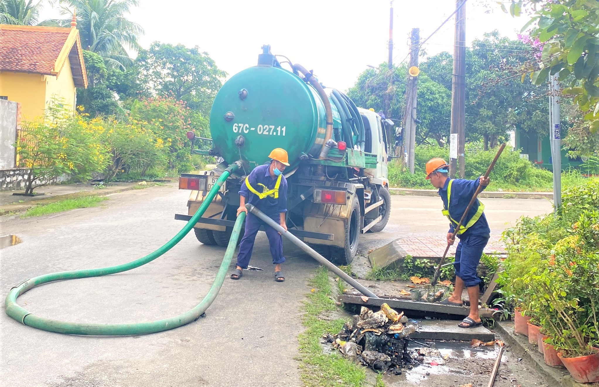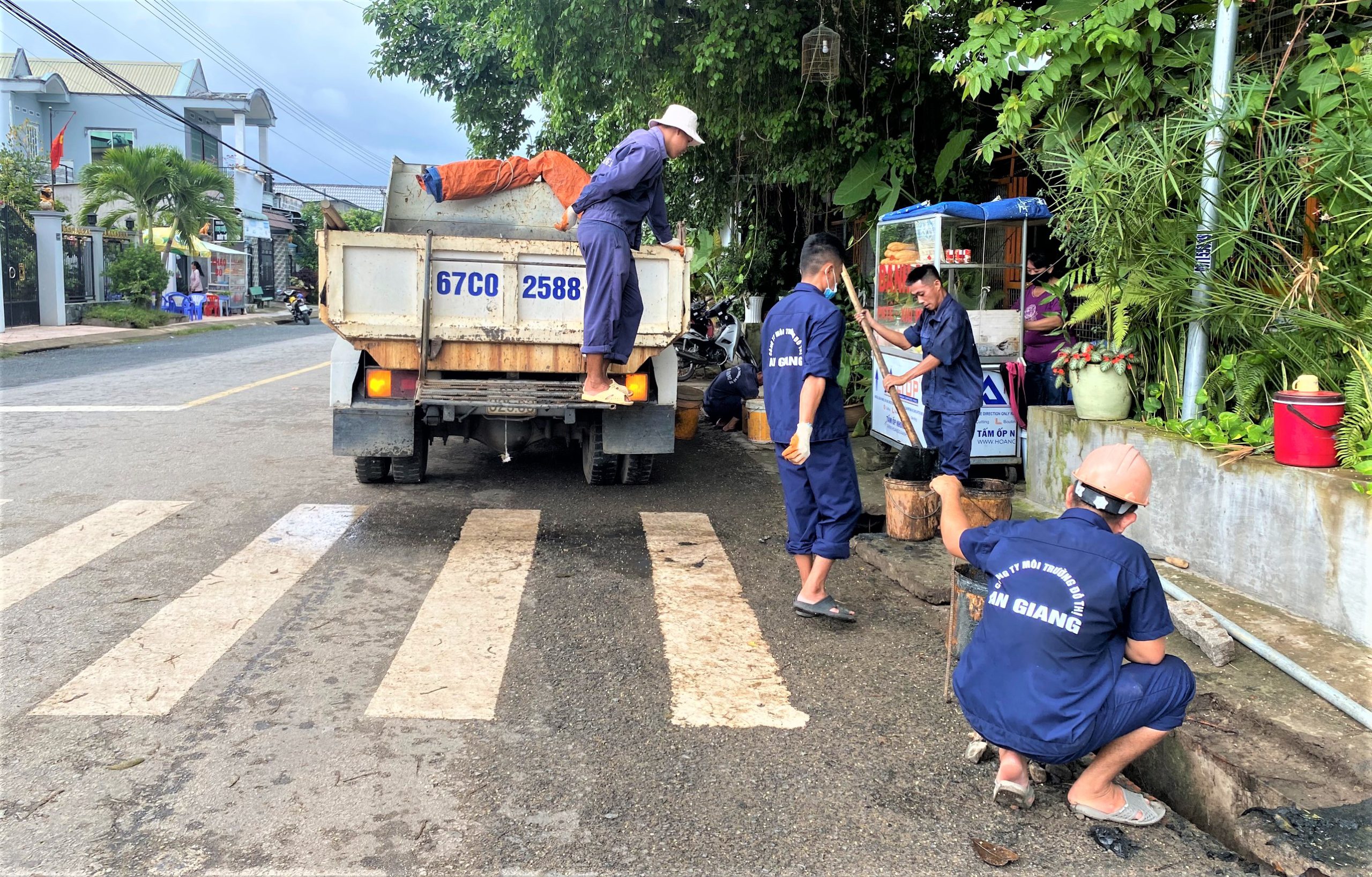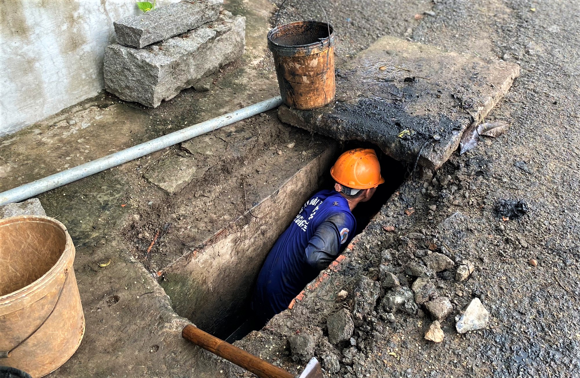 Được sự chấp thuận của lãnh đạo Công ty Cổ phần Môi trường đô thị An Giang, từ ngày 22/9, Đội Thoát nước đã cử hơn chục công nhân cùng nhiều loại xe chuyên dụng đến nơi thực hiện nhiệm vụ. Một nhóm công nhân cùng với xe chuyên dụng tiến hành tìm rút bùn lắng hoặc rác thải dưới mương nước và hố ga. Trong khi đó, nhóm công nhân khác phải ngâm mình dưới dòng nước lạnh để nạo vét những vật cản “cứng đầu” như gạch, đất, đá và những khúc cây to do người dân vứt bỏ gây tắc nghẽn cục bộ. Theo dự kiến, các mương thoát nước và hố ga dọc theo 2 tuyến đường Ngô Quyền và Trần Phú sẽ được khai thông trong vòng 3 ngày với tổng khối lượng bùn lắng cần được nạo vét khoảng 90m3