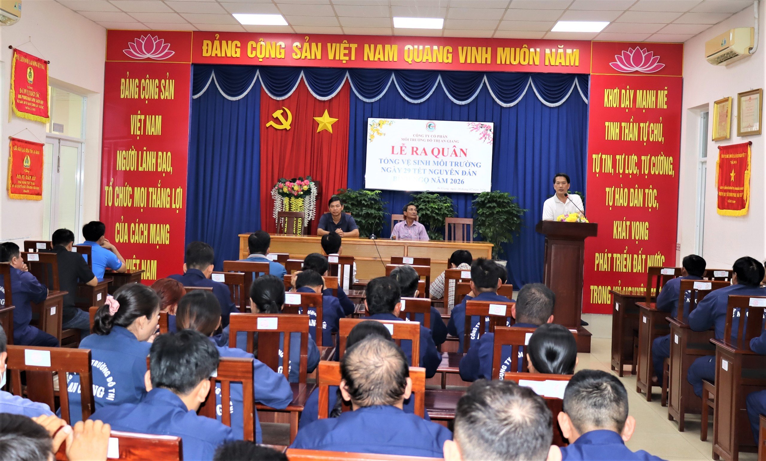 Ngày 16/2, Công ty Cổ phần Môi trường đô thị An Giang tổ chức lễ ra quân tổng vệ sinh môi trường ngày 29 Tết Nguyên đán Bính Ngọ năm 2026 với sự tham gia của hàng trăm công nhân trực thuộc các bộ phận chuyên môn của công ty.