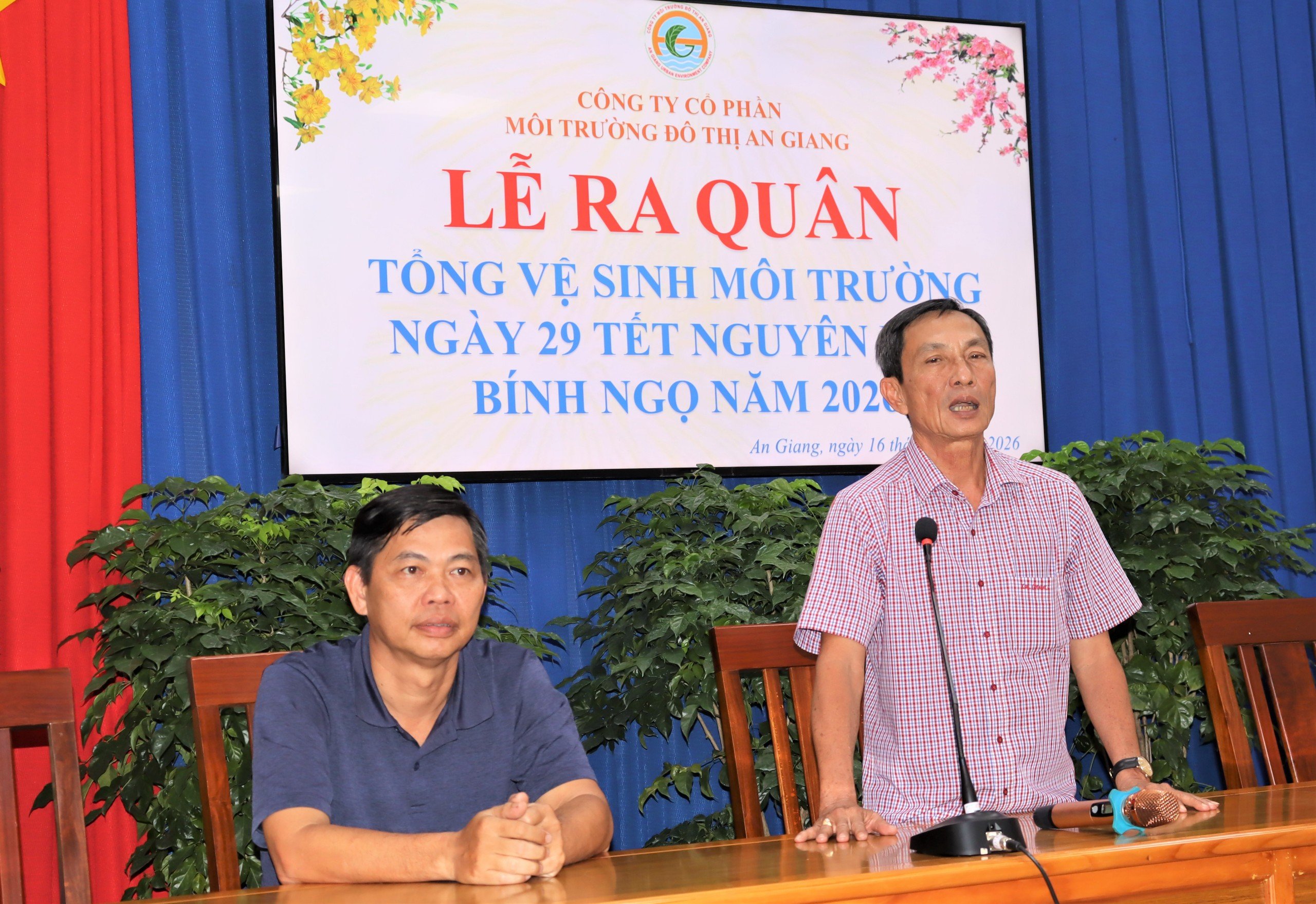 Lãnh đạo Công ty Cổ phần Môi trường đô thị An Giang tham dự và phát biểu chỉ đạo tại lễ ra quân tổng vệ sinh môi trường ngày 29 Tết Nguyên đán Bính Ngọ năm 2026