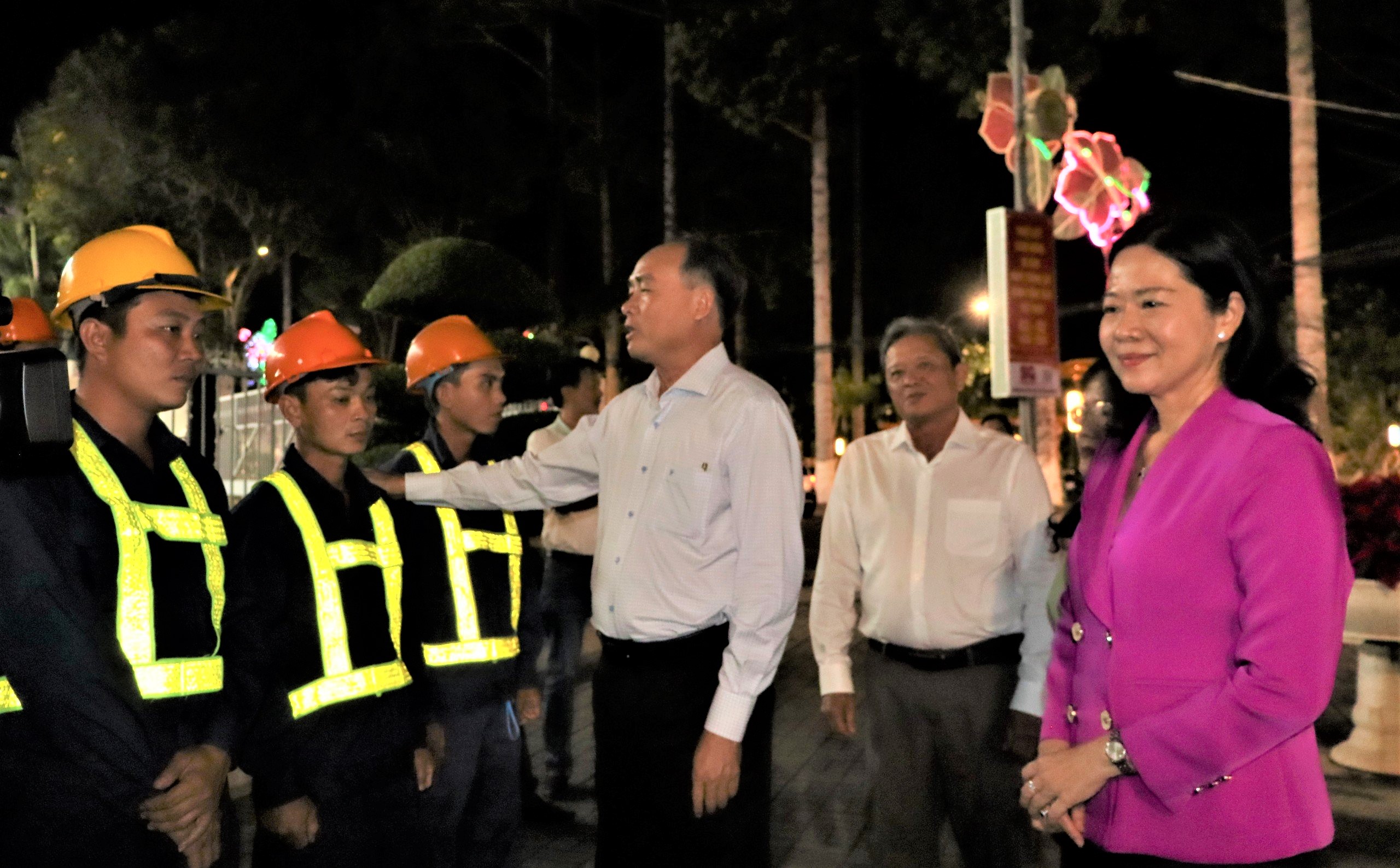 Bí thư Đảng ủy phường Long Xuyên cùng đoàn công tác đến thăm hỏi, tặng quà nhằm động viên tinh thần cho công nhân môi trường làm phải làm việc trong đêm giao thừa để đường phố luôn sạch đẹp