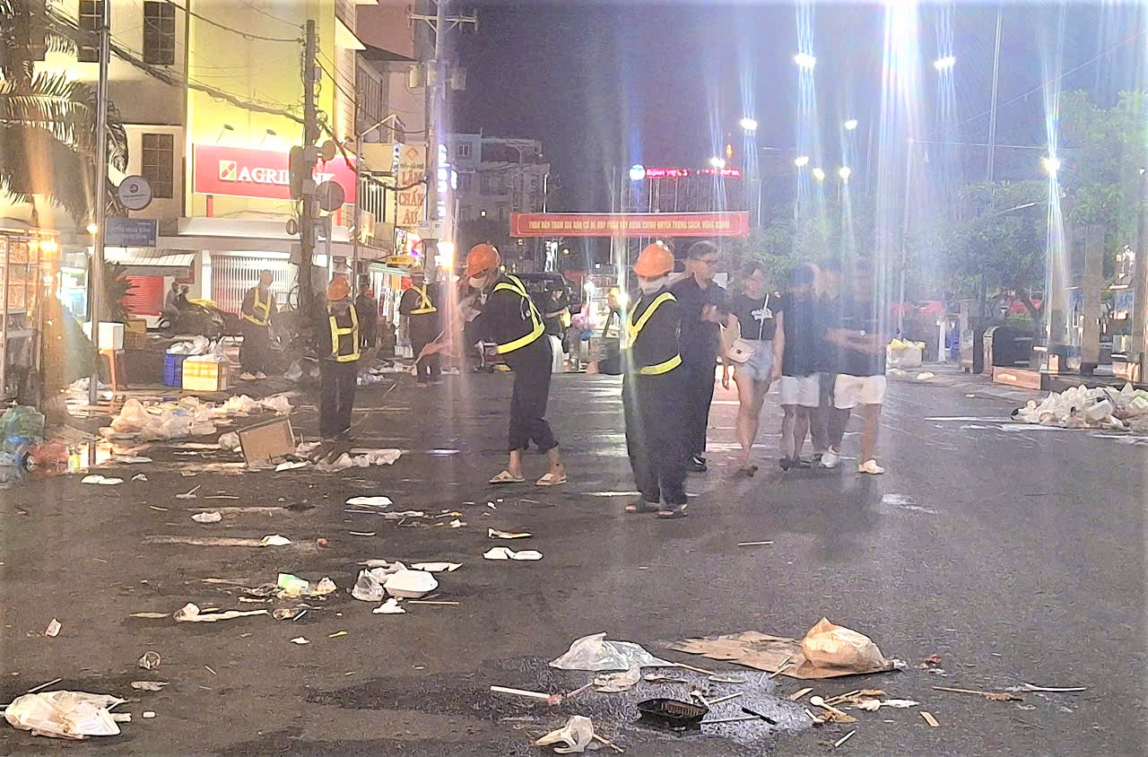 Ngay sau buổi lễ ra quân, có hơn 300 công nhân thuộc Đội Thoát nước, chăm sóc công viên, cây xanh được huy động cùng lực lượng thuộc Đội Vệ sinh toả ra khắp các nẻo đường trên toàn địa bàn các phường Long Xuyên, Bình Đức, Mỹ Thới và xã Mỹ Hoà Hưng để thực hiện công việc quét và thu gom rác. Một số công nhân quen leo trèo, chăm sóc công viên, cây xanh thì nay được giao nhiệm vụ vớt rác dọc theo tuyến bờ kè đường Bùi Văn Danh (phường Long Xuyên). Mặc dù phải trầm mình dưới nước lạnh trong đêm nhưng tất cả công nhân đều tỏ ra phấn khởi vì bản thân góp phần cho quê hương mình thêm sạch đẹp từ trên đường đến dưới sông sâu. Trong khi đó, hàng trăm công nhân khác vẫn miệt mài quét rác trên các tuyến đường hoặc thu gom rác trước nhà dân trước khi đưa đến các bãi tập kết tạm là những khoảng đất trống xa khu dân dư để hạn chế tối đa mùi hôi từ rác thải. Tất cả lượng rác phát sinh khổng lồ này sẽ được nhanh chóng đưa về khu xử lý rác theo quy định.