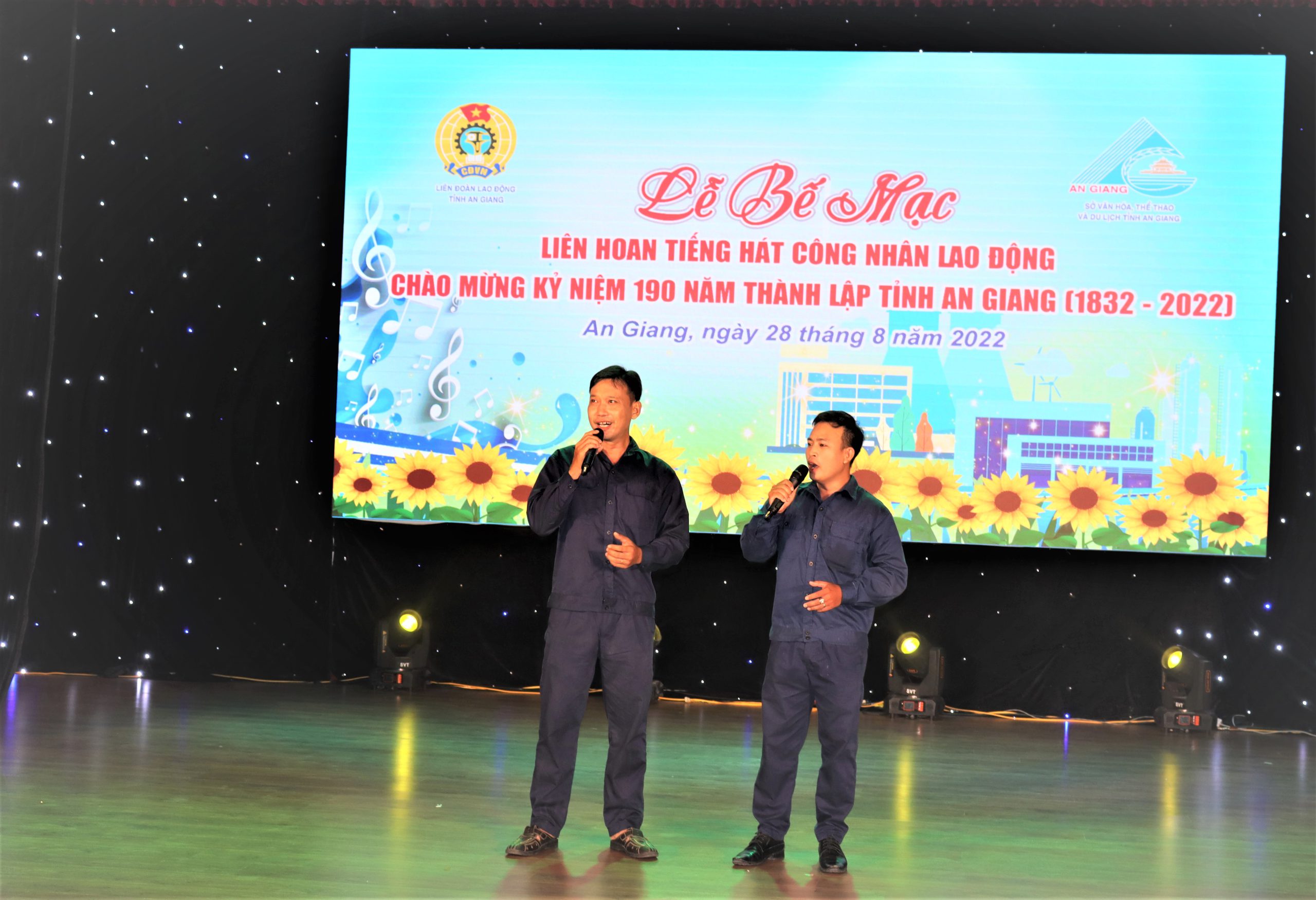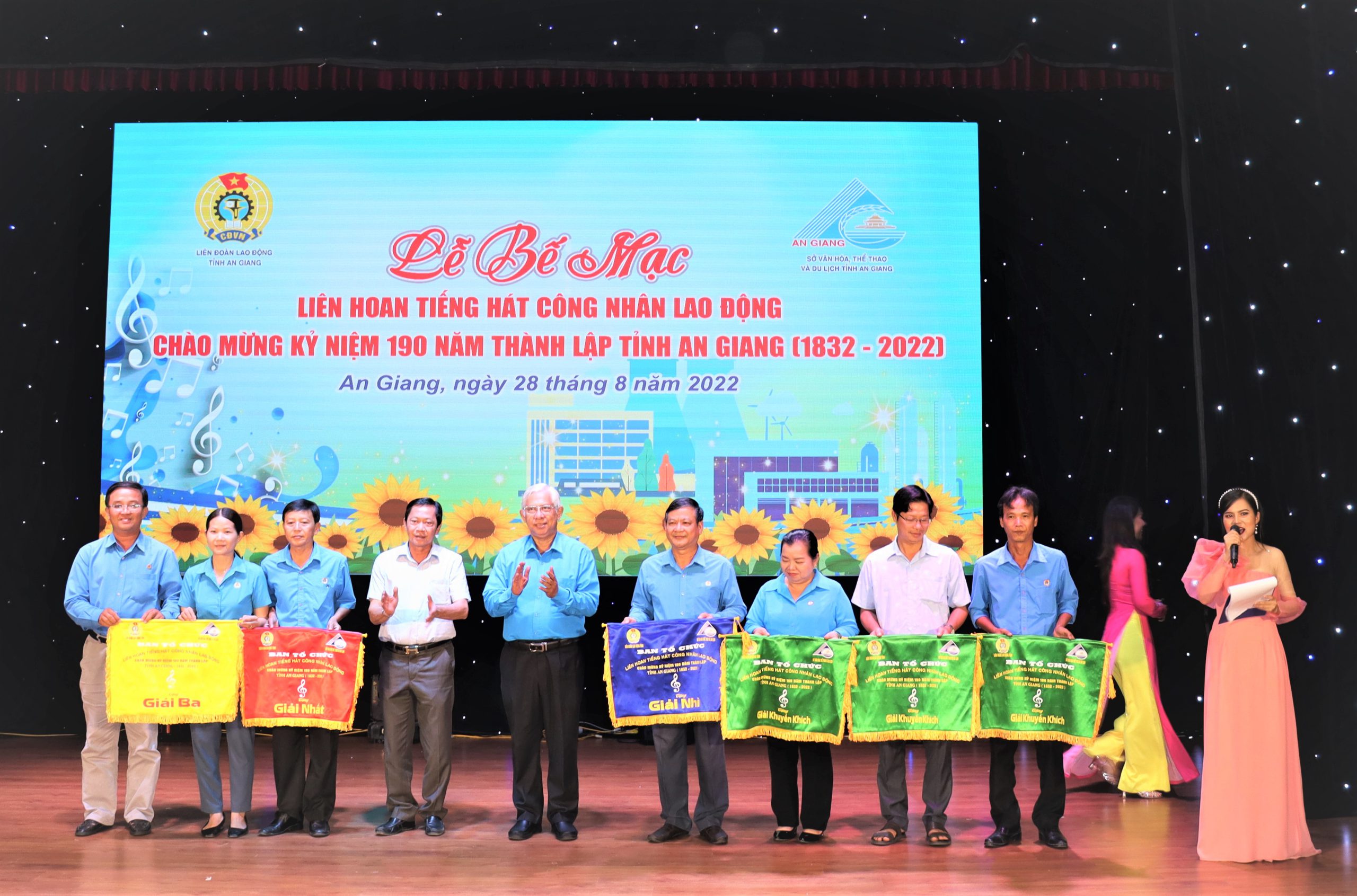 Tối 28/8, tại sân khấu Nhà Văn hóa Lao động tỉnh An Giang, Liên đoàn Lao động tỉnh An Giang phối hợp Sở Văn hóa, Thể thao và Du lịch tỉnh An Giang tổ chức lễ bế mạc Liên hoan Tiếng hát công nhân lao động năm 2022, chào mừng kỷ niệm 190 năm thành lập tỉnh An Giang (1832 – 2022).