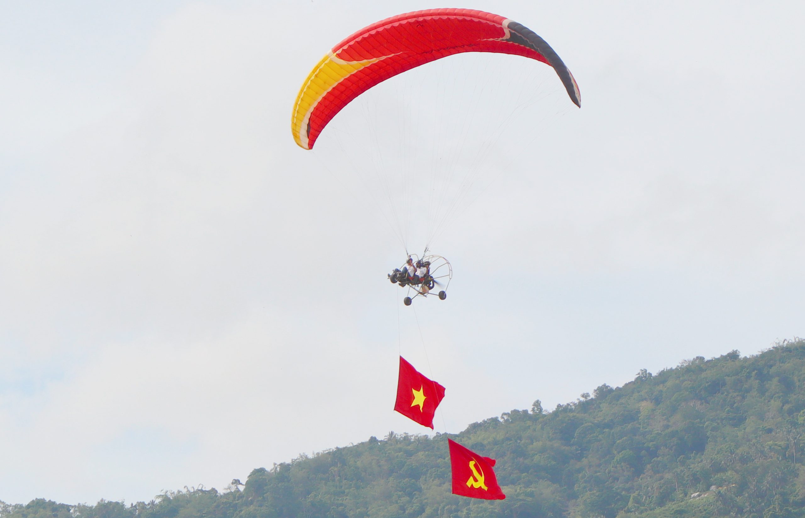 Chương trình hết sức ấn tượng với cờ Đảng, cờ Tổ quốc tung bay trên đỉnh Phụng Hoàng Sơn.