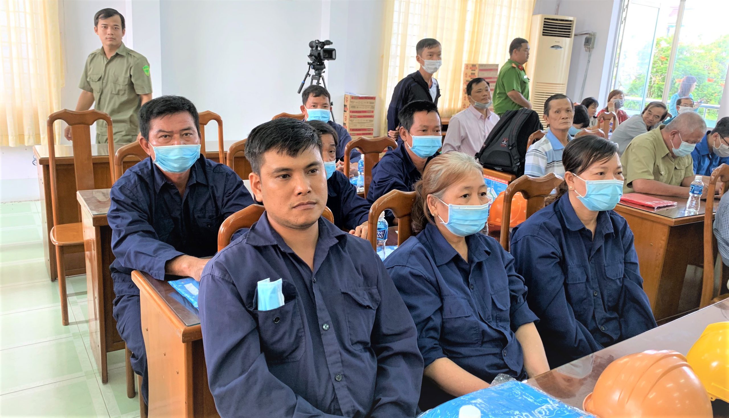 Niềm vui của các công nhân môi trường khi được sự quan tâm, hỗ trợ từ Ban Chỉ đạo Phòng chống tội phạm, HIV/AIDS và Xây dựng phong trào toàn dân bảo vệ an ninh Tổ quốc phường Mỹ Xuyên.