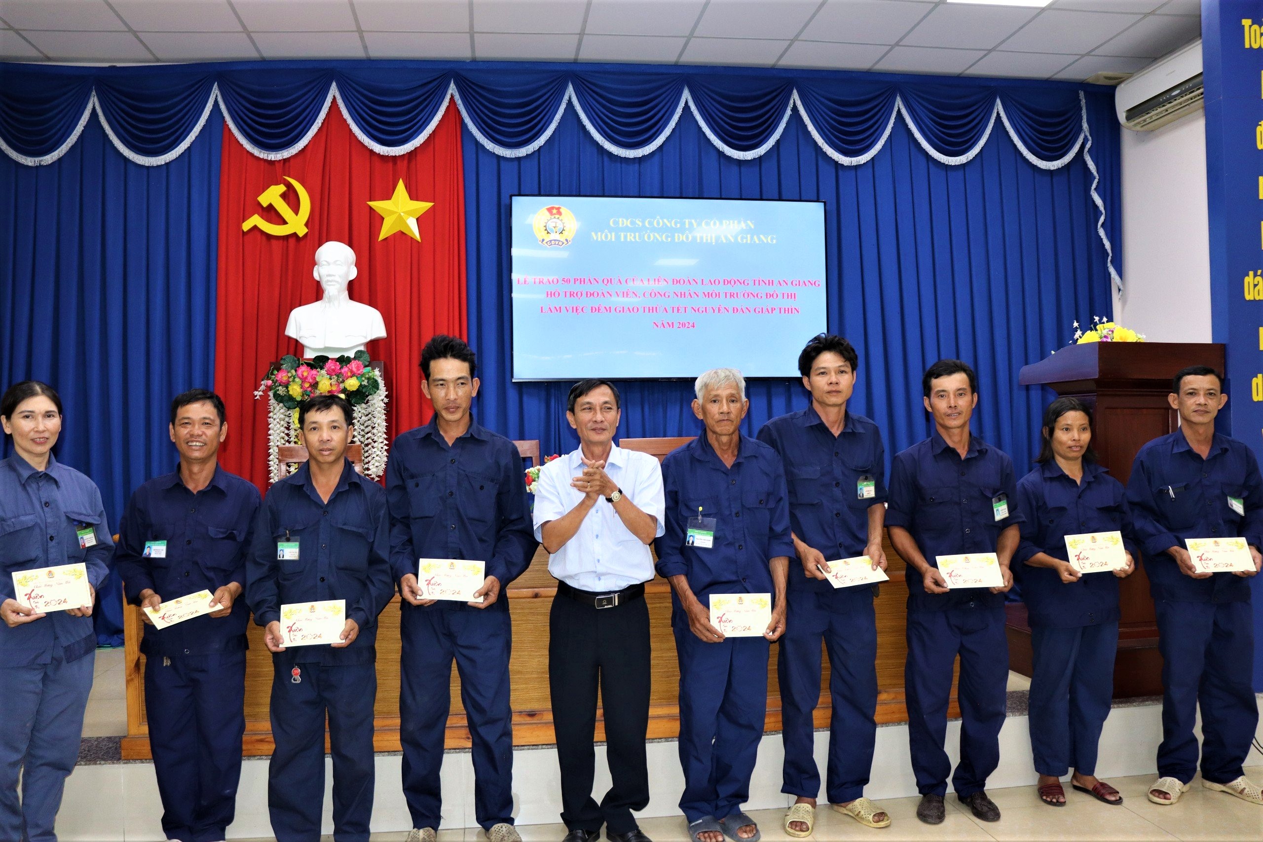 Ngày 20/2, Ban Chấp hành Công đoàn cơ sở Công ty Cổ phần Môi trường đô thị An Giang tổ chức lễ trao quà của Liên đoàn Lao động tỉnh An Giang cho đoàn viên, công nhân môi trường đô thị làm việc đêm giao thừa Tết Nguyên đán Giáp Thìn 2024.