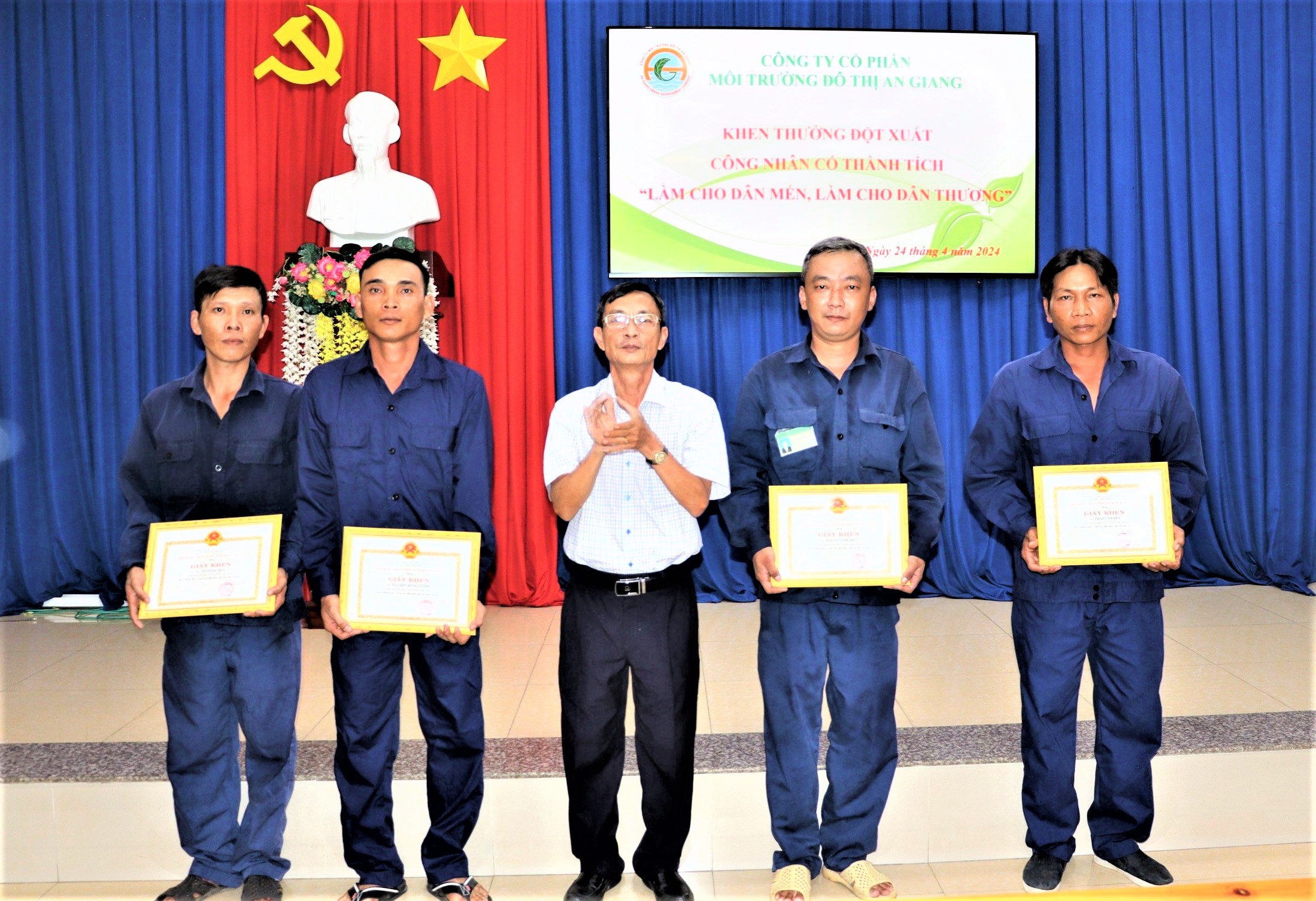 – Ngày 24/4, Công ty Cổ phần Môi trường đô thị An Giang tổ chức khen thưởng đột xuất 4 công nhân xử lý môi trường