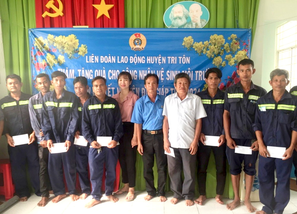 – Ngày 7/2, Liên đoàn Lao động huyện Tri Tôn (tỉnh An Giang) tổ chức gặp mặt, động viên và trao quà Tết Giáp Thìn 2024