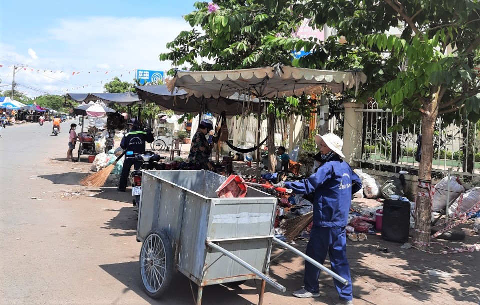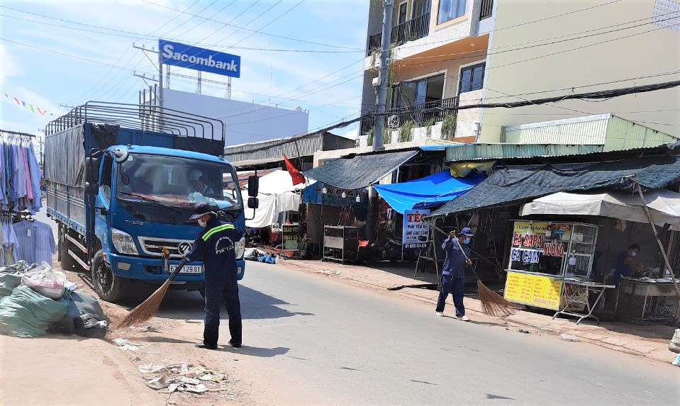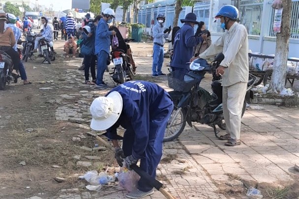 Một số hình ảnh công nhân môi trường thu gom rác trong và sau Đại lễ 18/5 tại thị trấn Phú Mỹ: